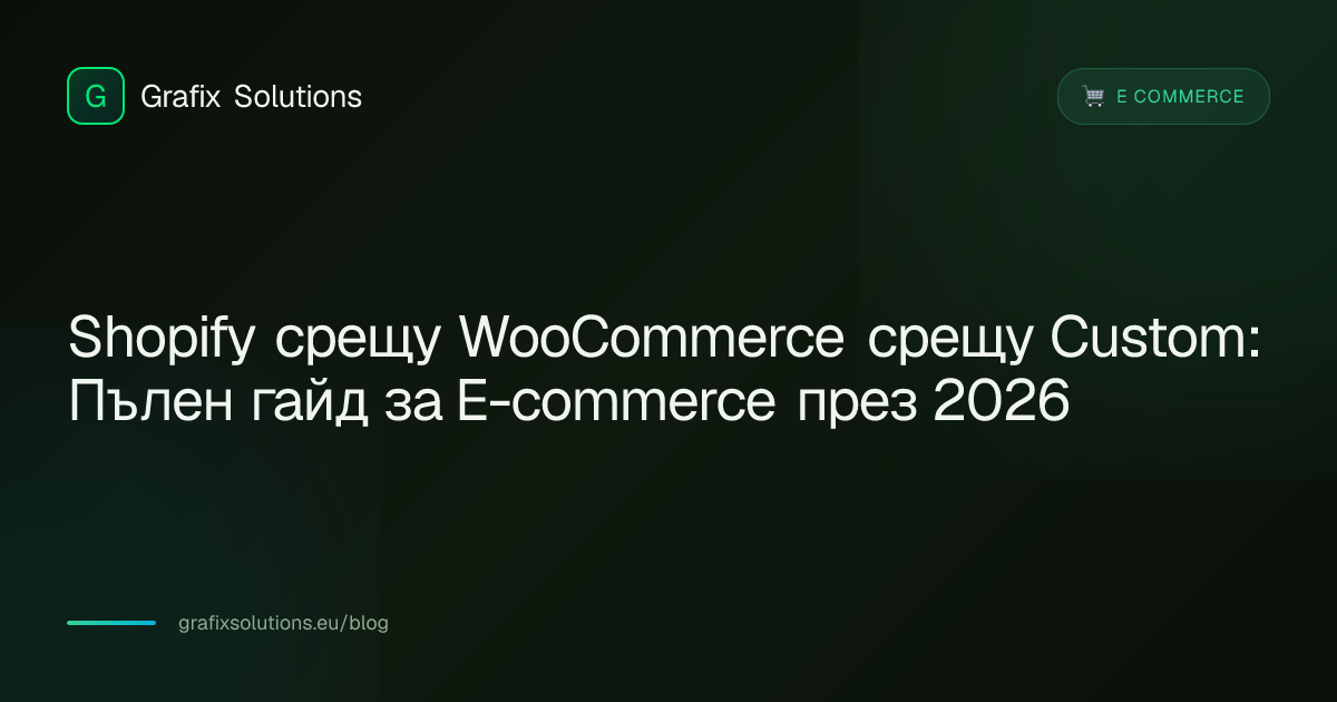 На Grafix Solutions помагаме на българските бизнеси да избират най-подходящата платформа. През 2026, тенденцията е към хибридни подходи - Shopify за бързо начало и миграция към WooCommerce или custom решение при растеж.