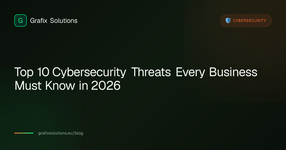 The digital landscape is constantly shifting, and cybersecurity threats are becoming increasingly sophisticated. As we navigate 2026, businesses of all sizes must understand the evolving threat landscape to protect their valuable data and maintain customer trust. At Grafix Solutions, we've identified the ten most pressing cybersecurity threats that every organization should be aware of.