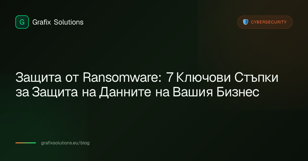 В Grafix Solutions разбираме уникалните киберсигурни предизвикателства, пред които стоят българските фирми. Затова подготвихме този пълен ръководство с 7 практични стъпки, които ще помогнат на вашия бизнес да се защити срещу ransomware атаки.